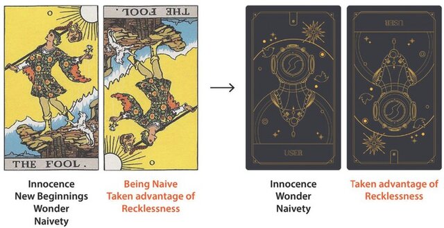 In a Tarot of Things they convert a traditional Tarot card deck Tarot card to IoT Tarot deck. Credit: Lindley, Joseph, Haider Ali Akmal, and Paul Coulton. Design research and object-oriented ontology. Open Philosophy 3, no. 1 (2020): 11-41.